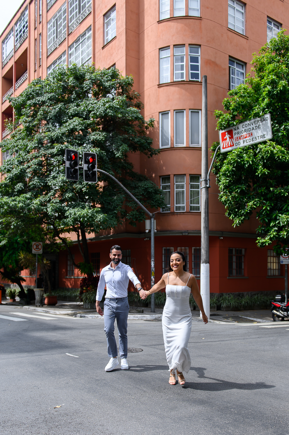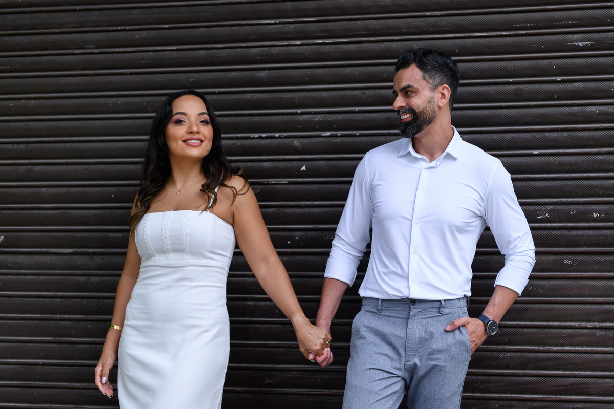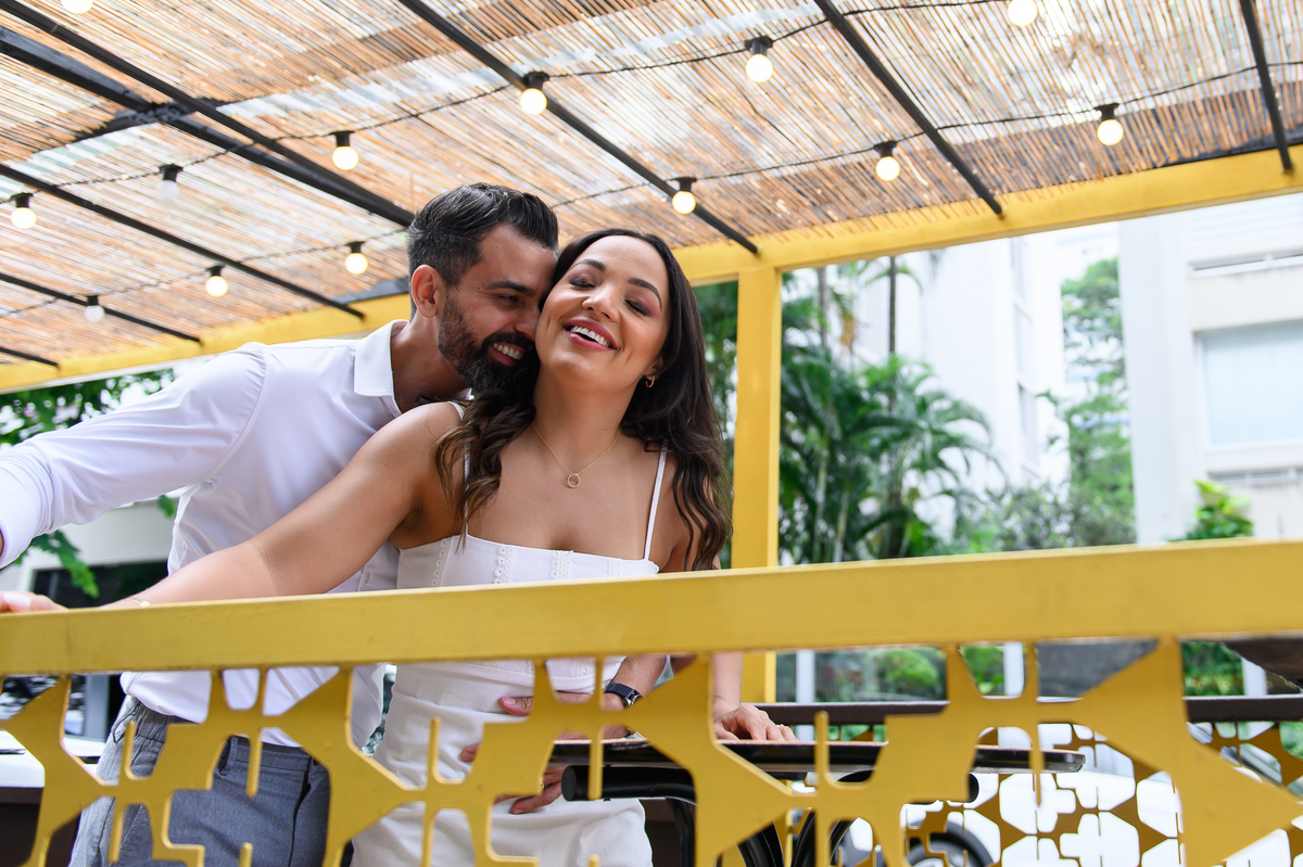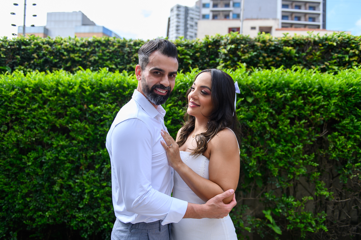 Após a cerimônia, o casal recebeu familiares e amigos em um almoço no Le Bleu Petit, e aproveitamos para fazer um mini ensaio de casamento na rua, que rendeu lindas fotos no estilo urbano e moderno, mas mesmo assim passando muito amor e espontaneidade.